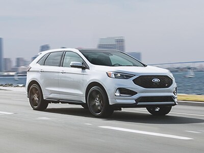 It's powered by a 2.7L V6 EcoBoost® engine that delivers 335 horsepower and 380 lb.-ft. of torque* coupled with a performance-tuned eight-speed automatic transmission. The 2020 Edge ST has road-gripping all-wheel drive, Ford Performance tuned suspension and race-inspired paddle shifters. Its standard leather-trimmed seats include supportive bolsters that help anchor you in tight turns. Topping it off is a striking grille with gloss black-painted mesh and prominent ST logo.